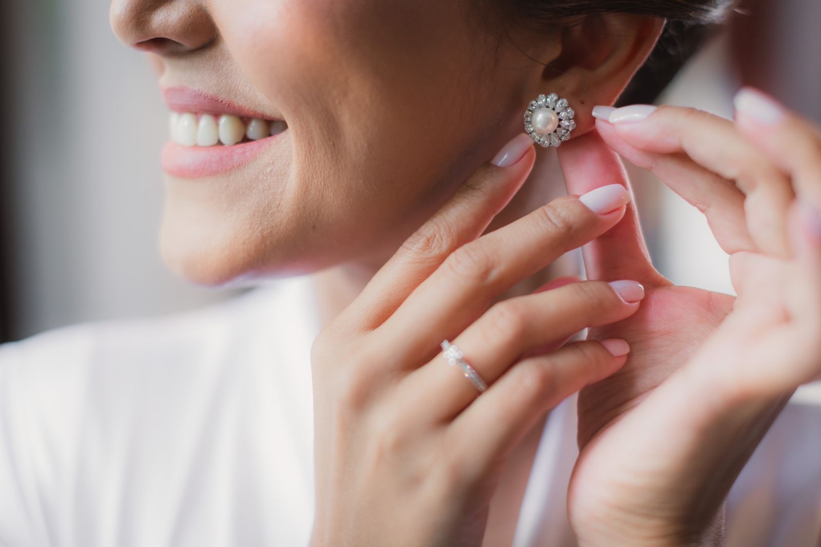 Brinco Camélia Pérolas Barrocas e Cristais — Joias Noiva