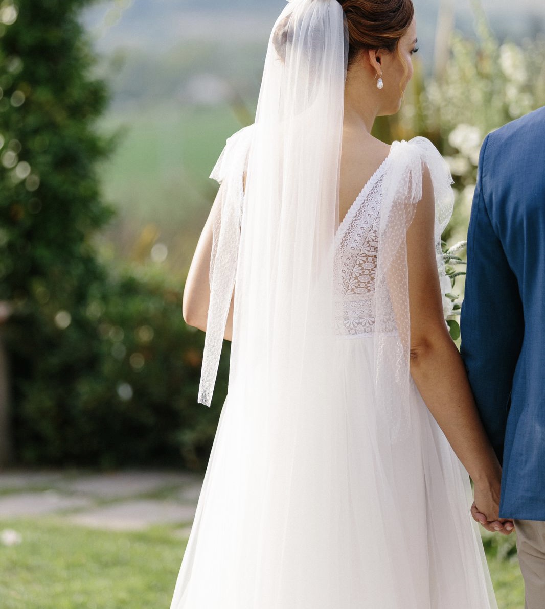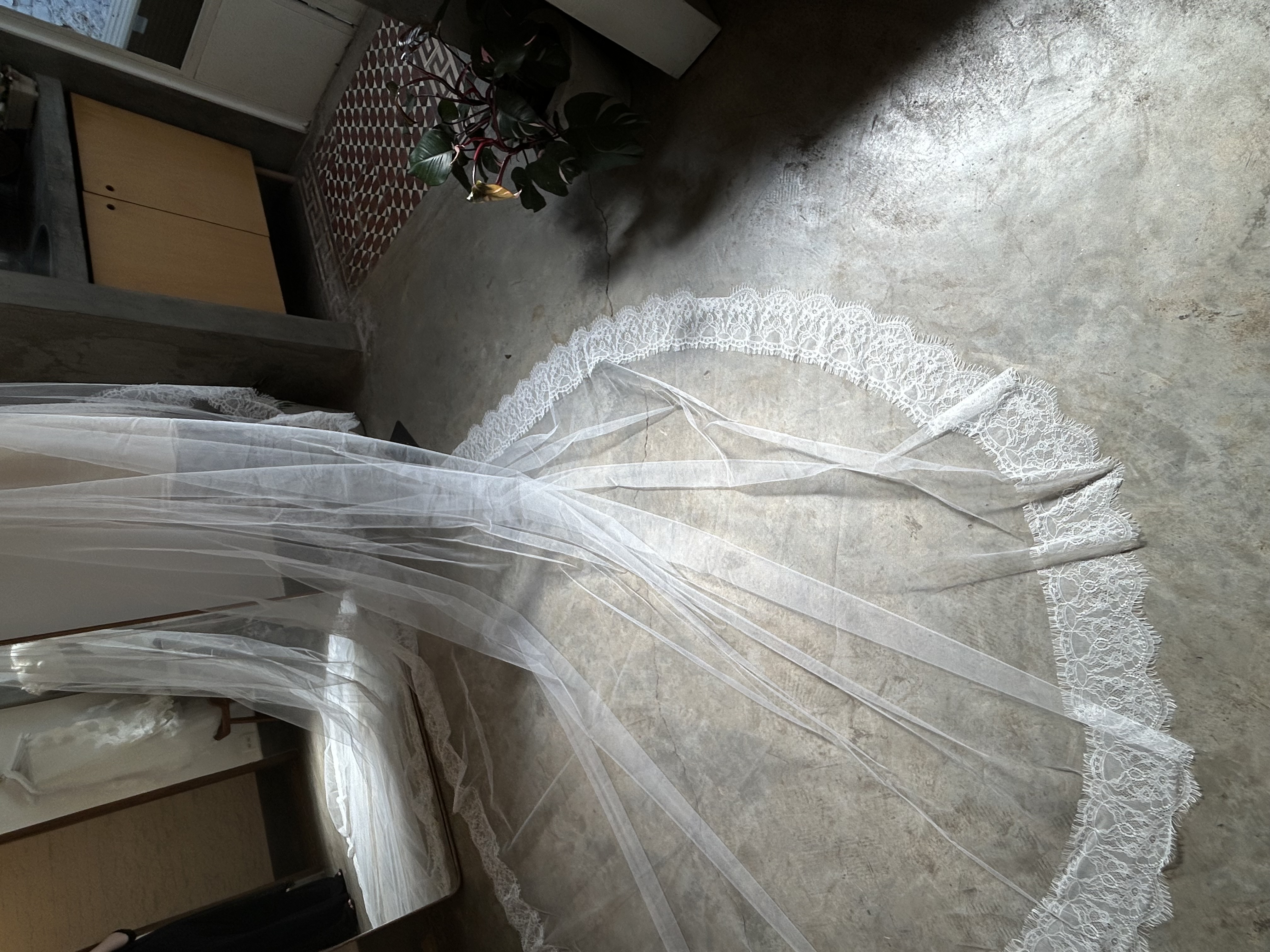 Véu de Noiva Tule Francês Barrado de Renda Chantilly Fino