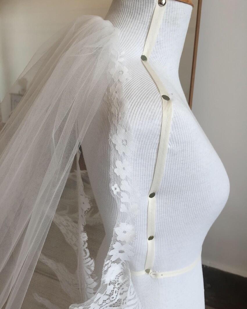 Véu de Noiva Em Tule Francês Barrado Renda Chantilly