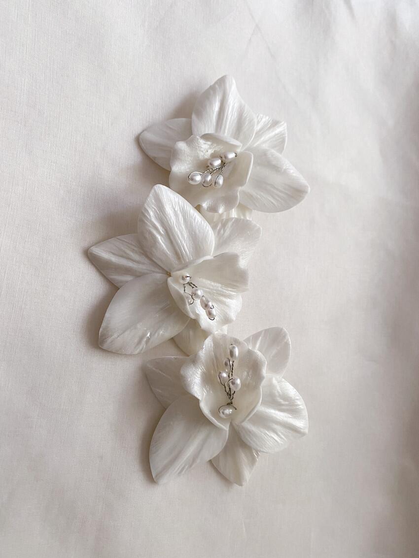 Trio orquídeas porcelana